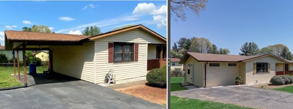 This South Asheville home was able to maintain their footprint and reduce costs by using their existing roofed carport as their addition location. We were able to add a master suit complete with large en suite bathroom and primary walk in closet.